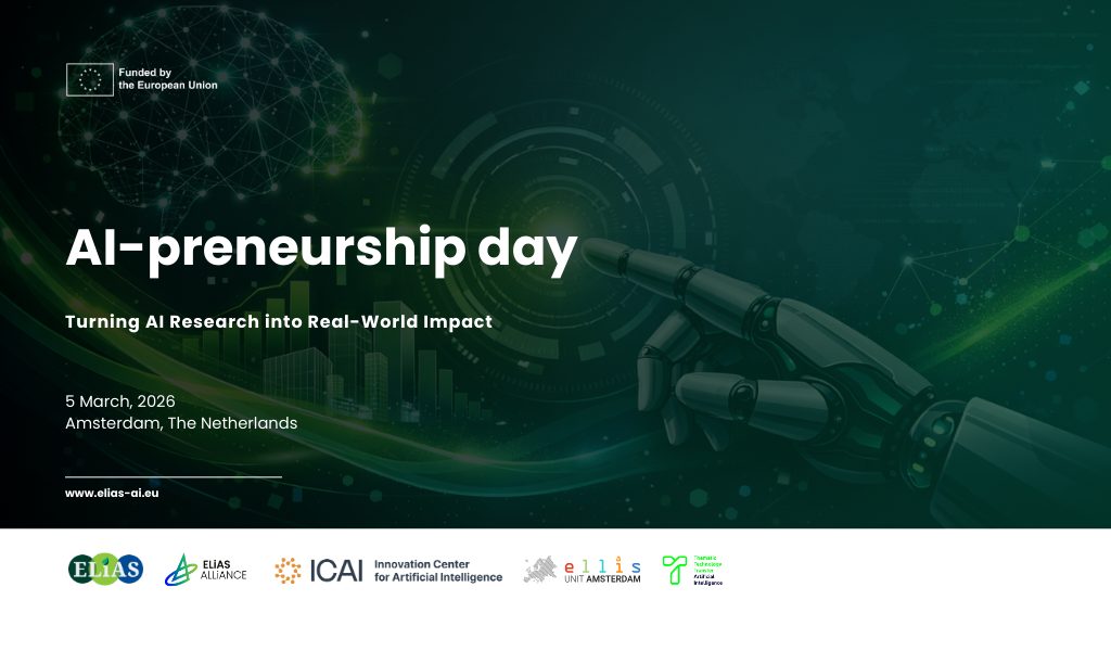 On Thursday, 5 March 2026, we’re hosting AI‑preneurship Day at LAB42, University of Amsterdam. Starting at 12:00, this free, one‑day event brings together AI students and early‑career researchers who want to explore how academic work can translate into real‑world impact. Lunch and drinks will be provided so you can focus fully on learning, connecting, and exploring new ideas.